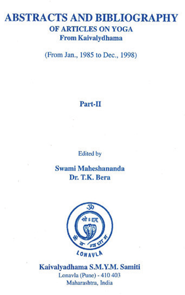 The present book “ABSTRACTS AND BIBLIOGRAPHY OF ARTICLES ON YOGA (Part-III) is the collection of scientific, as well as, philosophical-literary researches done in Kaivalyadhama during the period between April 1998 to March 2016. Most of the research literature, included in this book, has been published in Yoga Mimamsa, a peer-reviewed-online journal. Some of the research publications by Kaivalyadhama workers, contributed to other National and International peer reviewed Scientific Journals, have also been included.